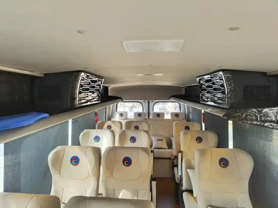 Our tempo traveller hire in Bangalore includes large luggage space and roof carriers to accommodate multiple suitcases for large groups.